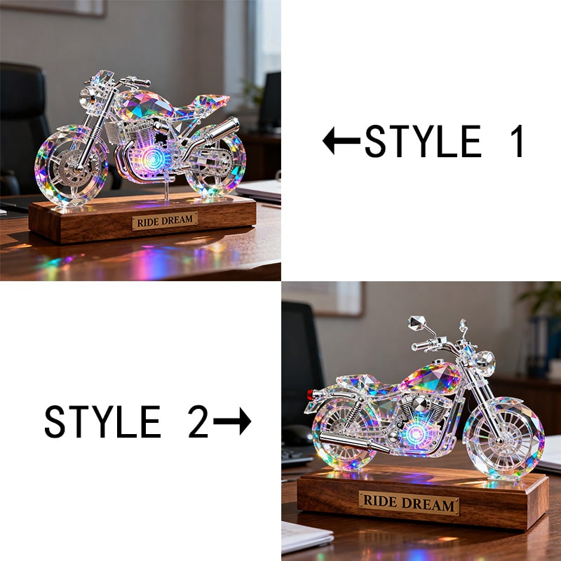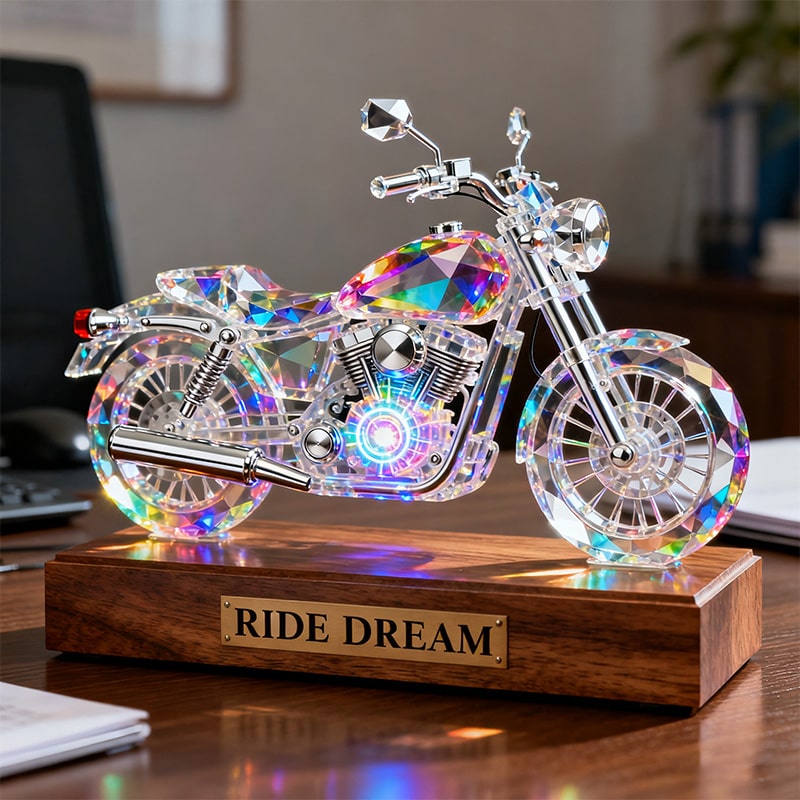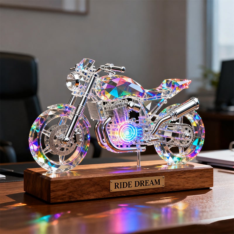 زينة سطح مكتب مخصصة مصنوعة من الكريستال الملون على شكل دراجة نارية - باسمك الخاص